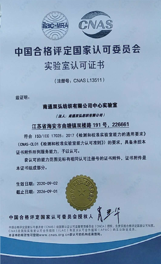 Sejak pengenalan akreditasi CNAS, Makmal Pusat Syarikat Besar Double telah terus meningkatkan pelbagai elemen pengurusan, audit dalaman yang teratur, dan ulasan pengurusan. Selepas lebih daripada dua tahun operasi, kematangan pengurusan telah diperbaiki secara berterusan. Dalam Julai 2020 , CNAS Pakar akreditasi menjalankan audit di lokasi makmal pusat syarikat besar. Kumpulan pakar sepenuhnya mengesahkan keupayaan pengurusan yang cekap makmal, dokumen manual lengkap, dan operasi dan ujian piawai. Dalam September 2020 , Makmal Pusat Syarikat Besar Double Berjaya Meluluskan Kajian Pakar dan Diperolehi CNA sijil. Ini menunjukkan bahawa keupayaan ujian produk serat dan benang syarikat besar telah diiktiraf oleh kerajaan, dan data ujian lebih berwibawa.