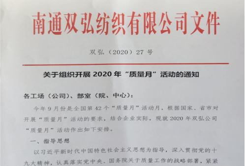 Pada majlis pelancaran, Setiausaha dan Pengerusi Jawatankuasa Parti Syarikat Ji Yijun mempublikasikan Dokumen Syarikat Double Great (2020) No. 27 "Bulan Kualiti", menjelaskan ideologi panduan, menentukan tema aktiviti, menyusun pelan aktiviti, melaksanakan kegiatan yang berkualiti, Pengawasan, pelepasan hasil, dan penilaian aktiviti, dan menjelaskan jabatan, orang yang bertanggungjawab khusus, dan masa penyelesaian setiap kerja. Beliau menegaskan bahawa syarikat itu harus mengadopsi pelbagai bentuk dan mempublikasikan secara meluas untuk mewujudkan suasana yang baik "tidak kira betapa kecil kualiti itu, ia adalah masalah besar" dan "semua orang bertanggungjawab untuk kualiti"; Untuk melaksanakan sepenuhnya keperluan aktiviti, semua jabatan harus memberi tumpuan kepada pelaksanaan tanggungjawab; Untuk mengambil "bulan yang berkualiti" sebagai peluang, tumpuan rapat terhadap semangat dokumen No. 1 Syarikat, dengan bersungguh-sungguh melaksanakan lima projek utama, meningkatkan mekanisme kawalan kualiti jangka panjang, secara mendalam dan komprehensif mempromosikan pengurusan kualiti, secara aktif membimbing semua pekerja, keseluruhan proses, dan penambahbaikan kualiti semua pusingan, membuat butiran besar-besaran, terus menggalakkan pembangunan yang besar dan terus-menerus.