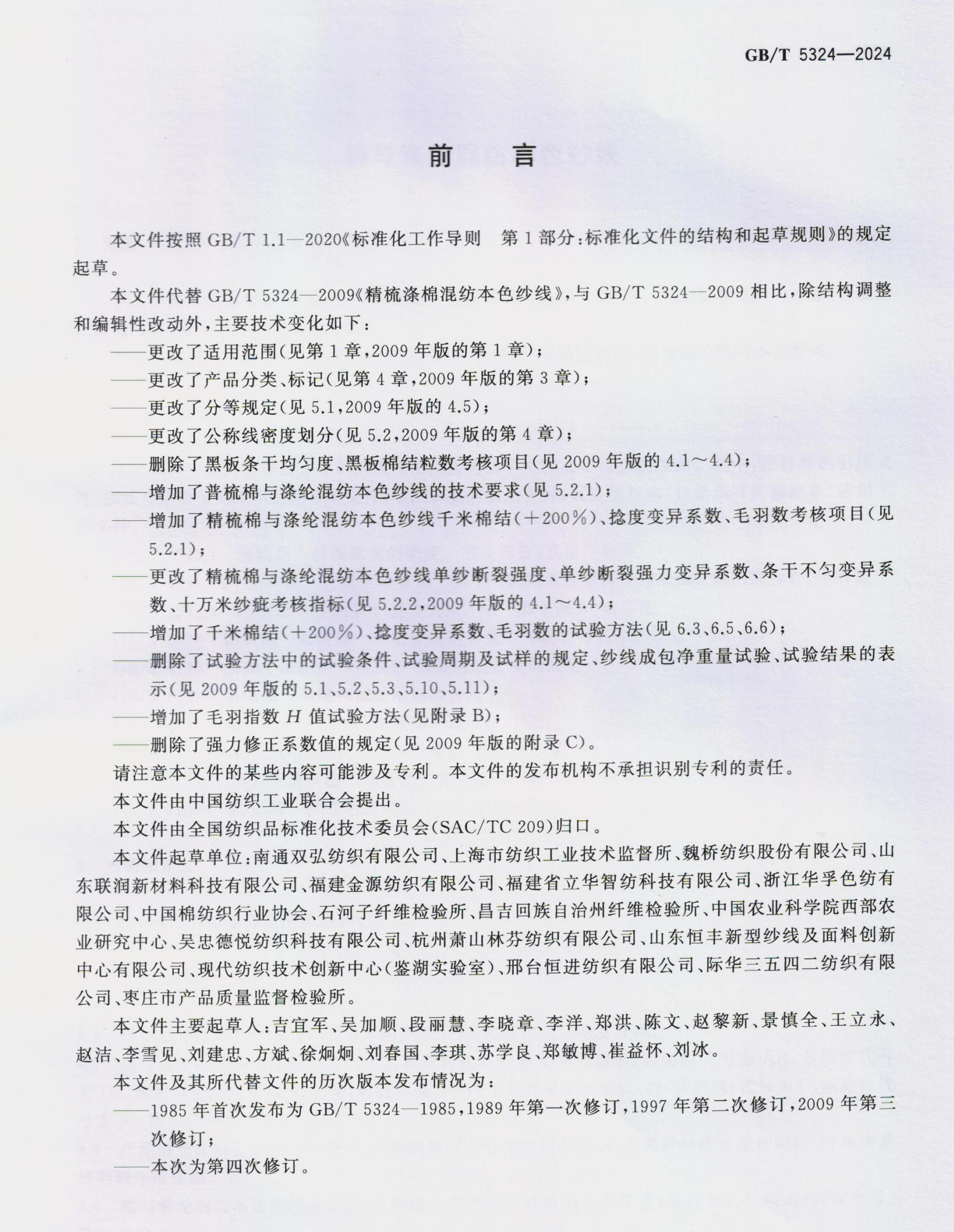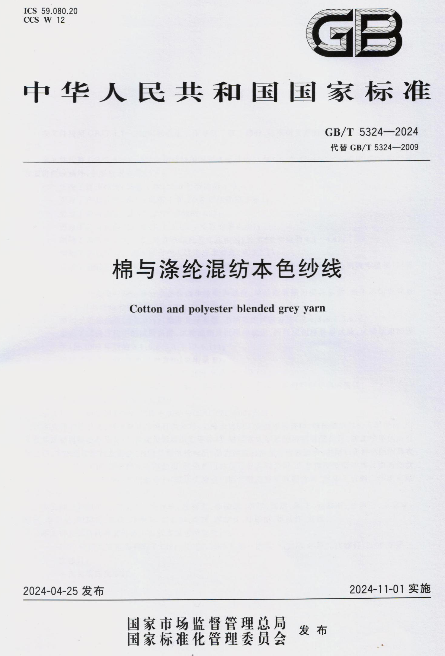 Standard Kebangsaan GB/T 5324-2024 "Kapas dan Poliester Benang Semulajadi" DRAFT OLEH DOUBLE GREAT COMPANY akan dilaksanakan secara rasmi pada 1 November, 2024.