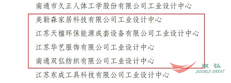 Baru -baru ini, ia telah dipelajari dari Jabatan Industri dan Teknologi Maklumat Daerah Jiangsu bahawa Pusat Reka Bentuk Perindustrian Nantong Double Great Textile Co., Ltd. telah dianugerahkan Tajuk Pusat Reka Bentuk Perindustrian Jiangsu pada tahun 2022 .