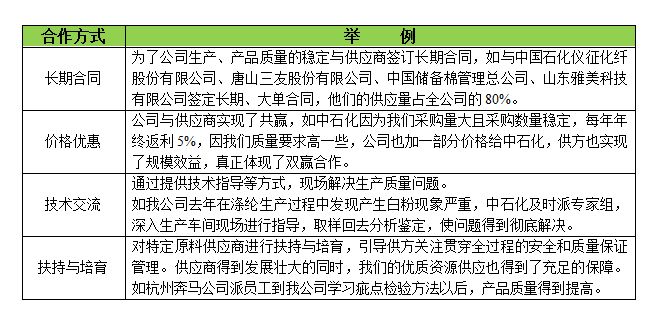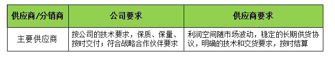 Syarikat memberi perhatian khusus kepada hubungan dengan pembekal dan telah mengenal pasti pembekal dan rakan kongsi utama. Untuk menggalakkan kerjasama jangka panjang, peningkatan bersama dan pembangunan menang-menang antara kedua-dua pihak, ia terutamanya menjalankan aspek berikut.